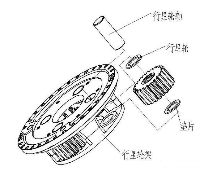 在行星齒輪組結(jié)構(gòu)中,沿行星減速機殼體中的齒圈圍繞齒輪(太陽輪...