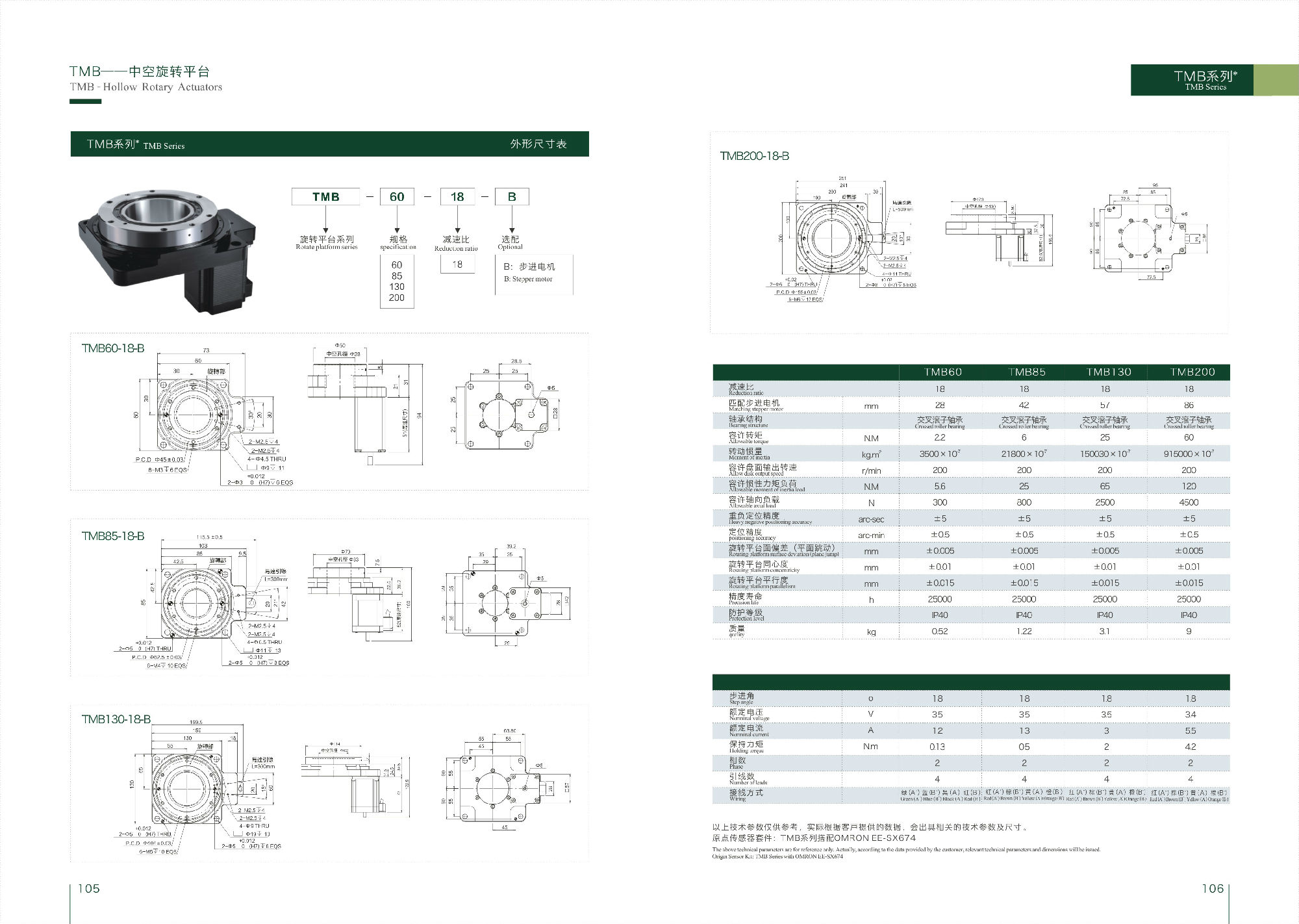 TMB中空旋轉(zhuǎn)平臺可采用不同廠家的伺服馬達驅(qū)動,精度高,運轉(zhuǎn)動作平穩(wěn),盤面運轉(zhuǎn)平穩(wěn),順暢且定位快速。