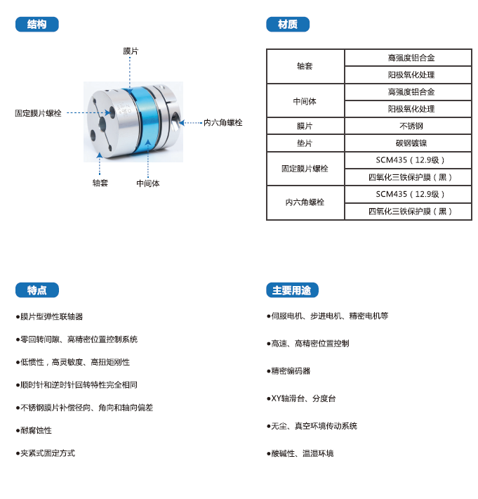 SFP-C系列聯軸器采用高強度鋁合金材料,經過陽極氧化處理,廣泛用于伺服電機、步進電機、精密電機等。