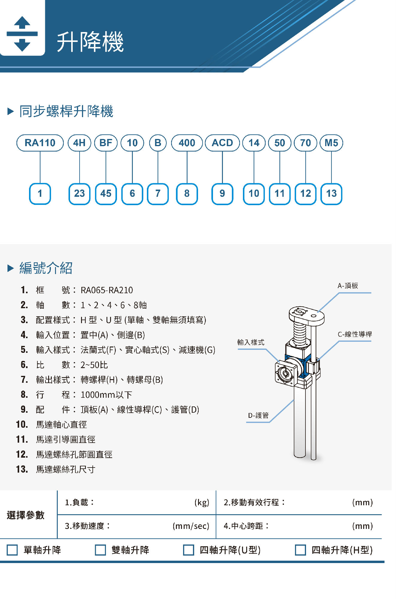 HAF系列四軸升降機(jī)是H型結(jié)構(gòu),選配頂板、護(hù)管。適用于晶片、面板、倉(cāng)儲(chǔ)、回流線等有垂直升降需求的產(chǎn)業(yè),可替換傳統(tǒng)的氣壓罐與蝸桿設(shè)備,同時(shí)達(dá)到多段與精準(zhǔn)控制。