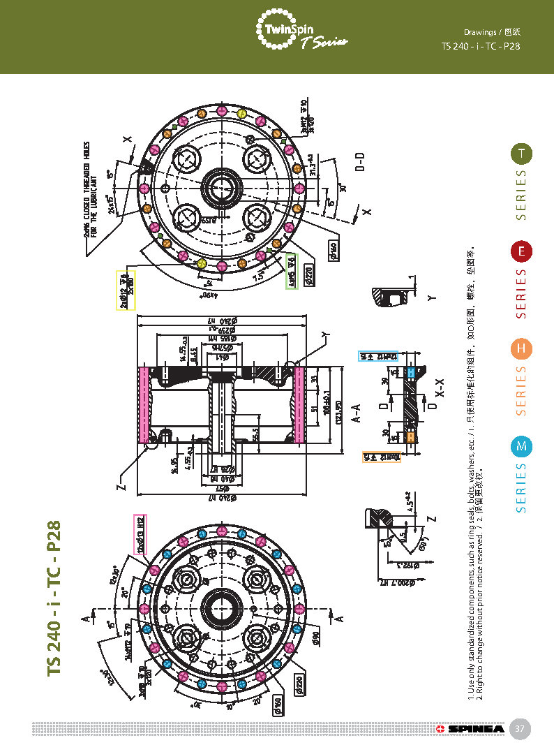 T 系列是帶有圓柱形殼體的Twinspin高精度減速機應用范圍最廣的形式。 該系列內部包含精密減速機構和高強度交叉滾子軸承,又名“軸承式減速機”。這種設計可以把負載直接安裝在減速機輸出法蘭上,省去輸出端的額外軸承。 T系列采用模塊化設計,允許用戶通過電機法蘭的方式連接各種電機。 標準的T系列減速機為半密封狀態(tài);需要用輸入法蘭和墊圈密封。SPINEA可根據客戶電機結構提供全密封帶輸入法蘭的減速機。