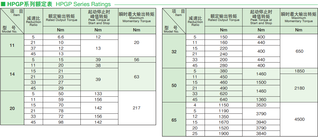 在行星齒輪減速機(jī)中追加轉(zhuǎn)矩提升的HPGP系列,高精度行星齒輪減速機(jī),可簡(jiǎn)單的安裝到各公司的伺服電機(jī)上。 諧波發(fā)生器:橢圓形凸輪的外圈上嵌入薄型的滾珠軸承,整體呈一橢圓形狀的零件。軸承的內(nèi)圈固定于凸輪之上,外圈則介由滾珠彈性變形。一般安裝在輸入軸上。 柔輪:具有薄壁杯型的金屬?gòu)椥泽w的零件。杯的開口部外圈刻有齒形。柔輪的底部稱為膜,通常安裝到輸出軸上。 剛輪:剛性環(huán)狀的零件。內(nèi)側(cè)上刻有與柔輪同樣大小的齒形,且比柔輪多2個(gè)齒數(shù)。一般固定在外殼上。
