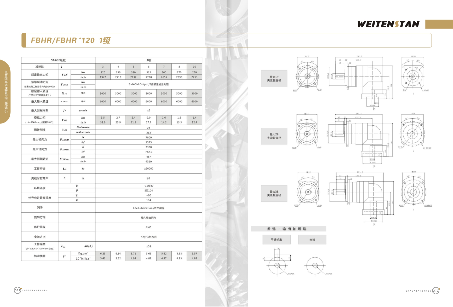 FBHR系列低背隙高轉(zhuǎn)速直角輸出減速機(jī)。 FBHR產(chǎn)品系列的轉(zhuǎn)角式減速機(jī),標(biāo)準(zhǔn)規(guī)格的轉(zhuǎn)角輸出適用于高精度高轉(zhuǎn)速的連續(xù)工作。 極高的功率密度。盡管以往系列性能極為出色,但我們成功的將扭矩提高了近40%。不斷提高極限值,典型威騰斯坦產(chǎn)品! 電機(jī)安裝簡(jiǎn)易。電機(jī)可安全簡(jiǎn)易的一步安裝,另外您也可以選擇威騰斯坦享有的專利權(quán)的,帶有長(zhǎng)度補(bǔ)償軸的安裝。 任意位置安裝。不管你在哪個(gè)位置安裝,你的齒輪箱始終有相同的潤(rùn)滑油/潤(rùn)滑脂量。安裝靈活、齒輪箱能夠垂直、水平、與從動(dòng)軸一起向上或向下安裝。 極高的定位精度。根據(jù)用戶需求,你可獲得回程間隙小于角分的高型行星齒輪箱。這也大大提高了你應(yīng)用上的定位精度。 通過(guò)齒輪嚙合,運(yùn)轉(zhuǎn)平穩(wěn)。相比直齒嚙合齒輪箱,本公司的斜齒嚙合齒輪箱運(yùn)轉(zhuǎn)噪音減低了50dB-A,你深知50dB-A所創(chuàng)造的價(jià)值遠(yuǎn)遠(yuǎn)高于70dB-A。此外還有:不再感動(dòng)振動(dòng),運(yùn)轉(zhuǎn)平穩(wěn)到令人驚訝。 世界水平的預(yù)期壽命。原材料進(jìn)行了優(yōu)化,幾何形狀同樣進(jìn)行了優(yōu)化。