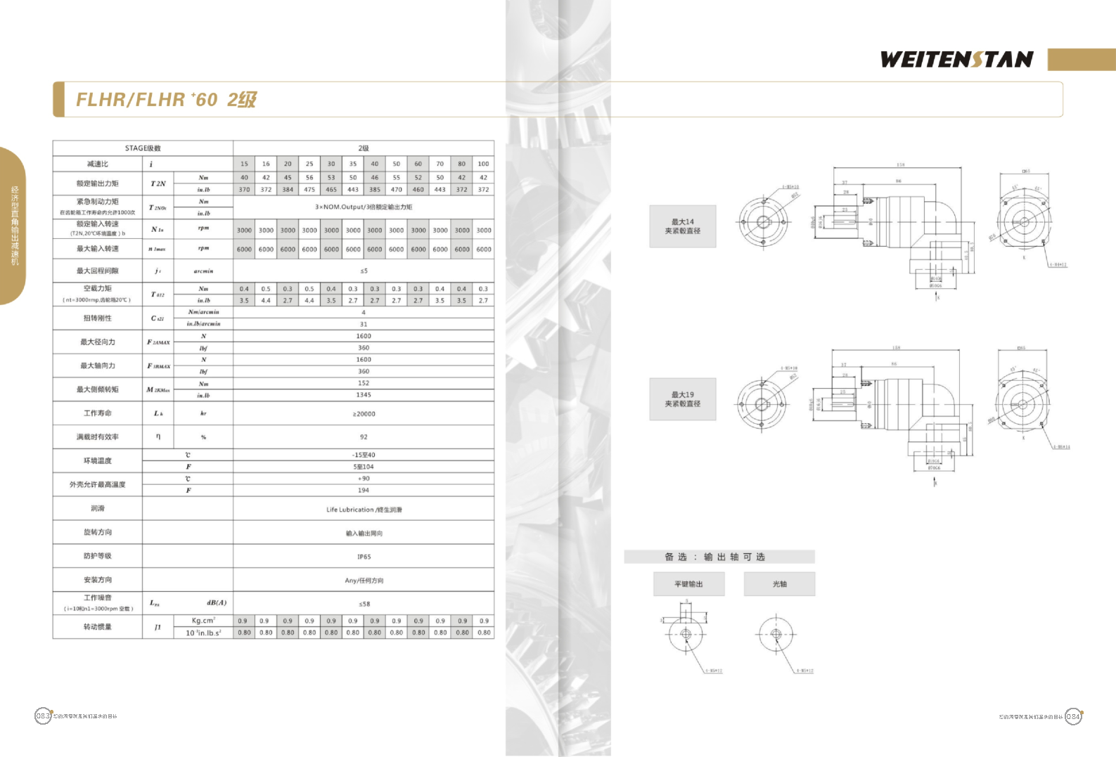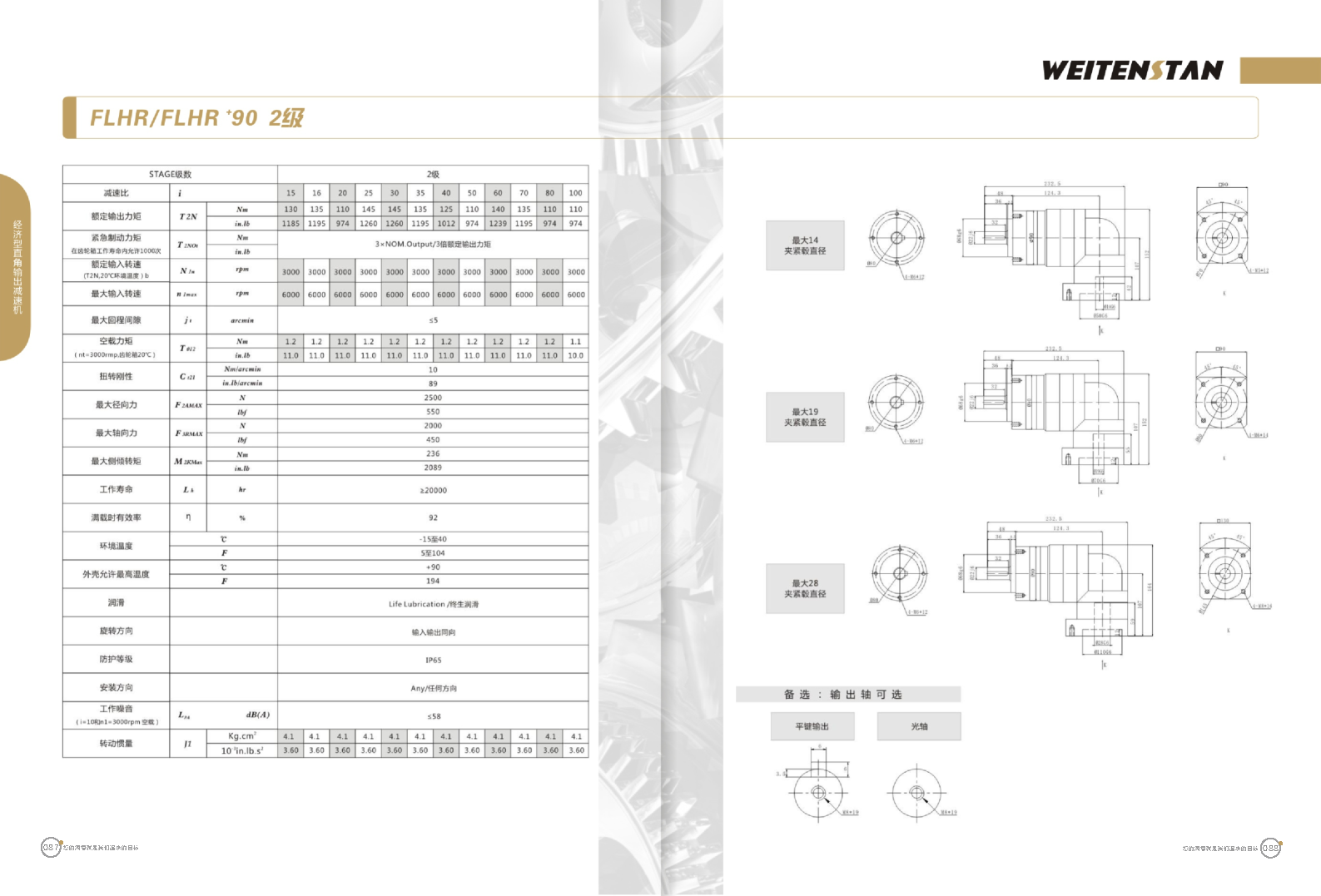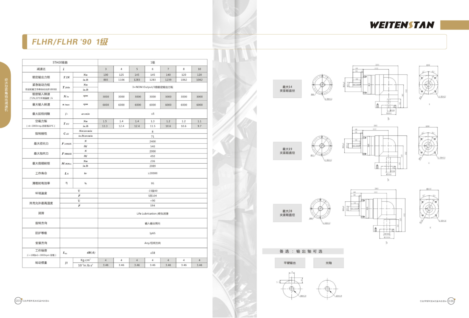 FLHR系列經(jīng)濟型直角輸出減速機。 FLHR產(chǎn)品系列的經(jīng)濟型轉角式減速機。 極高的功率密度。盡管以往系列性能極為出色,但我們成功的將扭矩提高了近40%。不斷提高極限值,典型威騰斯坦產(chǎn)品! 電機安裝簡易。電機可安全簡易的一步安裝,另外您也可以選擇威騰斯坦享有的專利權的,帶有長度補償軸的安裝。 任意位置安裝。不管你在哪個位置安裝,你的齒輪箱始終有相同的潤滑油/潤滑脂量。安裝靈活、齒輪箱能夠垂直、水平、與從動軸一起向上或向下安裝。 極高的定位精度。根據(jù)用戶需求,你可獲得回程間隙小于角分的高型行星齒輪箱。這也大大提高了你應用上的定位精度。 通過齒輪嚙合,運轉平穩(wěn)。相比直齒嚙合齒輪箱,本公司的斜齒嚙合齒輪箱運轉噪音減低了50dB-A,你深知50dB-A所創(chuàng)造的價值遠遠高于70dB-A。此外還有:不再感動振動,運轉平穩(wěn)到令人驚訝。 世界水平的預期壽命。原材料進行了優(yōu)化,幾何形狀同樣進行了優(yōu)化。